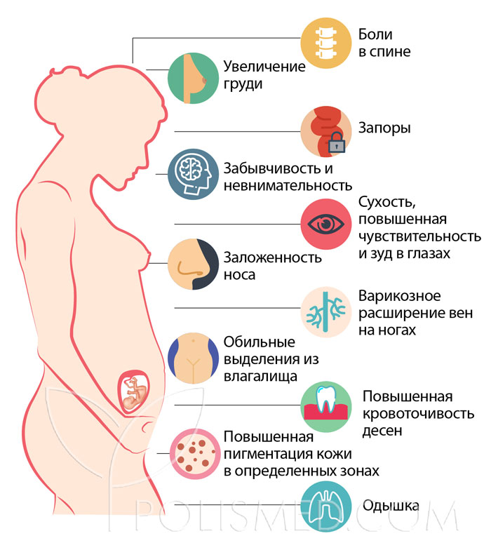 · Запоры. Возникают из-за того, что матка увеличивается и сдавливает кишечник.