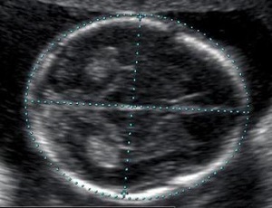 | Лобно-затылочный размер – продольный размер головки, измеряется между выступающими частями лобной и затылочной кости. Размеры в норме, в зависимости от срока беременности: · 16 недель – 4,5 см. · 17 недель – 5 см. · 18 недель – 5,3 см. · 19 недель – 5,7 см. · 20 недель – 6,2 см. · 21 неделя – 6,5 см. · 22 недели – 6,9 см. |