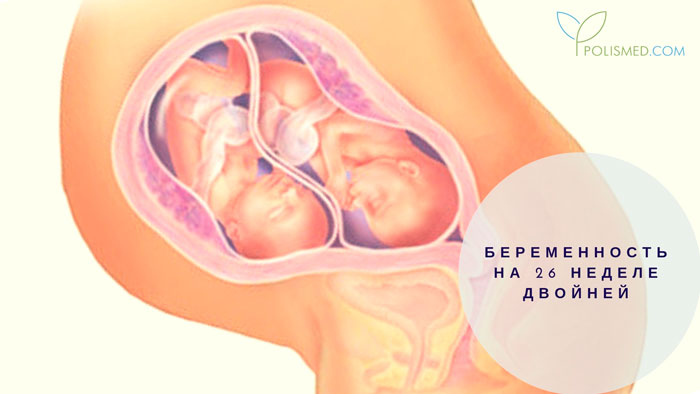 Женщины, которые беременны двойней, на двадцать шестой неделе беременности испытывают те же симптомы, но они могут быть сильнее. Сильнее выражены боли в спине, больше увеличен живот и пр. В целом же течение двуплодной беременности не отличается от обычной.