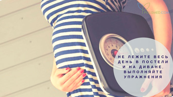 · Не лежите весь день в постели и на диване, выполняйте упражнения, которые порекомендовал врач или специалист в школе будущих мам.