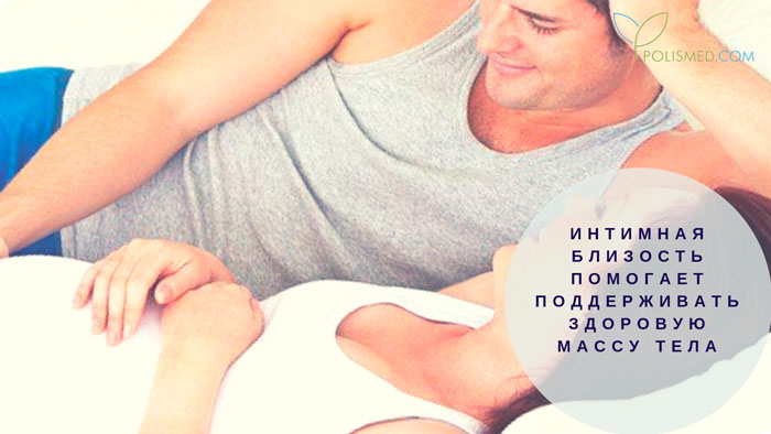 · Интимная близость помогает поддерживать здоровую массу тела. Потому что во время секса, как и во время физических упражнений, сгорает много калорий.