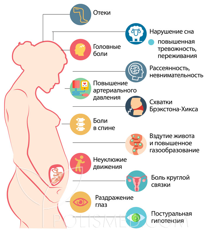 «Золотое время беременности», когда будущая мама отлично себя чувствовала и была полна энергии, подходит к концу. Приближается третий триместр, матка с плодом достигает довольно больших размеров, и все сильнее дают о себе знать некоторые симптомы.