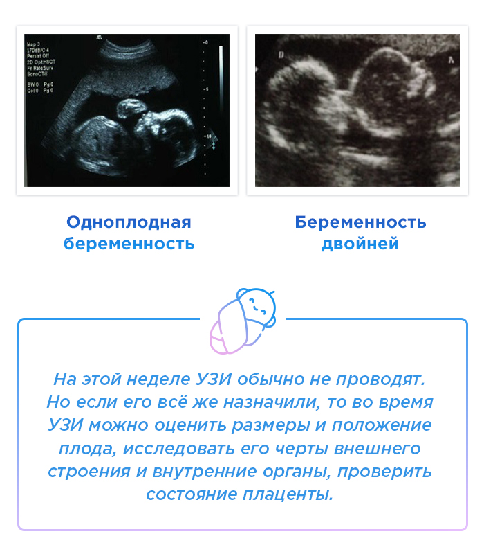 При двуплодной беременности срок очень сложно определить по высоте стояния дна матки – расстояния от верхнего края лобкового симфиза до верхнего края матки. Роды обычно происходят на более ранних сроках по сравнению с одноплодными беременностями. В большинстве случаев двойняшки рождаются совершенно здоровыми, тем не менее, такие будущие мамы попадают в группу повышенного риска, врачи женской консультации уделяют им больше внимания. Возможно, вам будут чаще назначать осмотры, те или иные исследования.