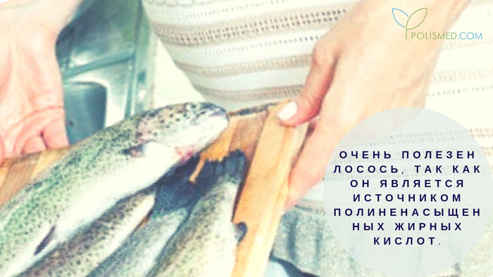 Очень полезен лосось, так как он является источником полиненасыщенных жирных кислот.
