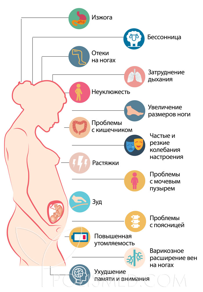 Бессонница. Спать будущей маме мешают беспокойные мысли и неприятные ощущения в пояснице, ногах, которые усиливаются по мере роста будущего ребенка. Замыкается порочный круг. Ночью женщина не может нормально выспаться, а весь день ходит сонливая и уставшая.