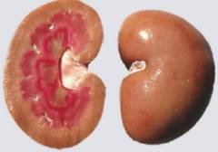 Функции почек Развивающемуся плоду требуется постоянная доставка различных питательных веществ, в том числе и белков. Однако при отложении амилоида в почках матери происходит разрушение почечной ткани, вследствие чего клетки крови и крупномолекулярные белки начинают выделяться с мочой, что в конечном итоге приводит в выраженной белковой недостаточности, отекам и асциту (