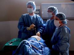Лапароскопия – это хирургическое вмешательство. Его проводят в операционной, в стерильных условиях, под общим наркозом. Хирург делает один прокол в стенке живота для того, чтобы ввести в него инструмент с видеокамерой, и еще необходимое количество (обычно 3) – для того, чтобы ввести хирургические эндоскопические инструменты. После того как вмешательство завершено, на места проколов накладывают швы.