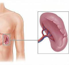 - Увеличение селезенки. Выявляется во время ощупывания живота, проведения ультразвукового исследования. При этом в общем анализе крови отмечается уменьшение количества лейкоцитов, эритроцитов и тромбоцитов.