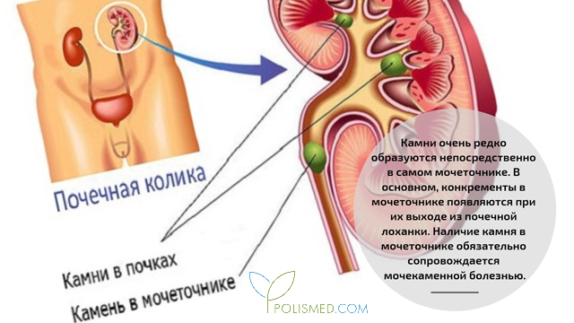Камень в мочеточнике, в подавляющем большинстве случаев, является результатом выхода камня из лоханки почки.