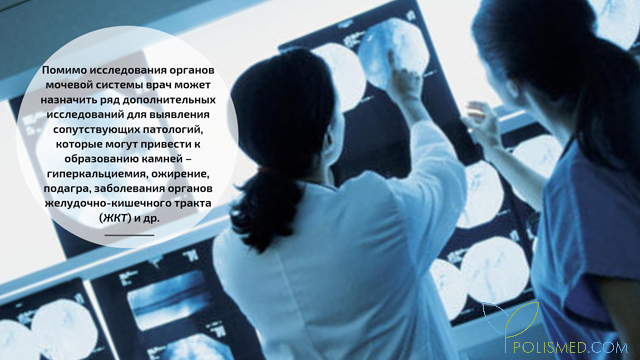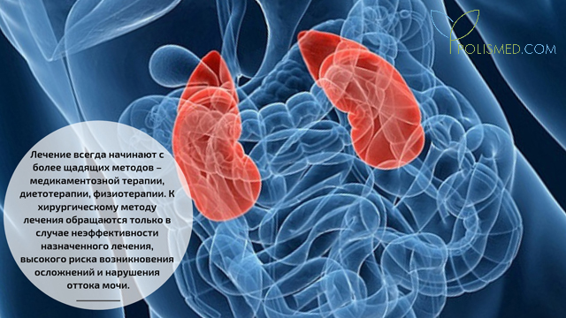 Специалист проведет тщательное лабораторное и инструментальное обследование пациента, проанализирует его жалобы и симптомы, характер питания, образ жизни и т. д. На основе данных врач индивидуально для каждого случая подберет оптимальное лечение – терапевтическое или хирургическое. Первое, что необходимо сделать – это восстановить отток мочи и снять болевой синдром. От этого будет зависеть метод и экстренность терапии. Лечение может быть амбулаторным (на дому) или стационарным (в больнице) в зависимости от типа камней, степени поражения почек и мочеточников, наличия осложнений и тяжелых сопутствующих патологий. Пациент будет находиться под наблюдением врача в течение всего периода лечения.