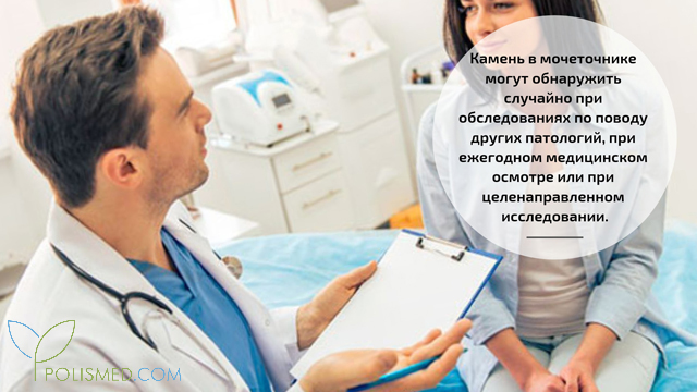 Камень в мочеточнике могут обнаружить случайно при обследованиях по поводу других патологий, при ежегодном медицинском осмотре или при целенаправленном исследовании. В любом случае необходимо незамедлительно обратиться к участковому врачу, который направит пациента на консультацию к урологу.