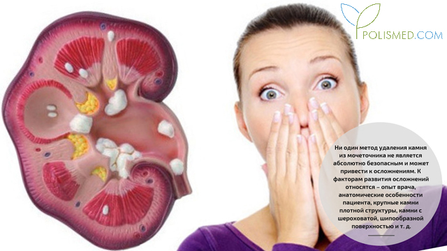 Ни один метод удаления камня из мочеточника не является абсолютно безопасным и может привести к осложнениям. К факторам развития осложнений относятся опыт врача, анатомические особенности пациента, крупные камни плотной структуры, камни с шероховатой, шипообразной поверхностью и т. д.