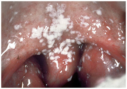 Поначалу налет легко снимается. Под ним образуется ярко красная поверхность, иногда с язвочками. Это результат деятельности грибков. Эти микроорганизмы выделяют ферменты, разрушающие соседние клетки. Постепенно они проникают в глубокие слои слизистой оболочки рта.