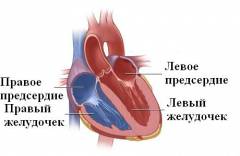 В строении сердца различают четыре камеры: - Правое предсердие. Правое предсердие располагается в верхней правой части сердца. Оно принимает венозную кровь со всего организма (из большого круга кровообращения). Кровь поступает через верхнюю и нижнюю полые вены. В результате сокращения стенок правого предсердия кровь попадает в правый желудочек. Между этими полостями находится трехстворчатый клапан сердца. С левым предсердием в норме (без патологических отверстий в перегородке) сообщения нет. Перегородка, разделяющая предсердия, называется межпредсердной.