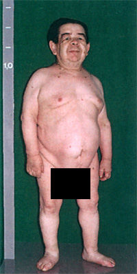 - Непропорциональное тело: короткие руки и ноги, удлиненное туловище, большие широкие кисти с короткими пальцами.