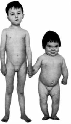 - Размеры головы нормальны, но на фоне отстающего роста конечностей и туловища, с возрастом она начинает казаться непропорционально большой.