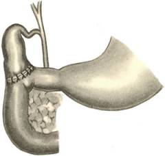 - Желчекаменная болезнь. После удаления желчного пузыря хирург подшивает желчный проток к двенадцатиперстной кишке.