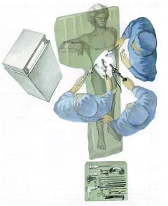 Эндоскопические инструменты. Существует много их разновидностей: различные зажимы, ножницы, электроножи, степлеры для наложения металлических скоб и пр. Хирург выбирает тот инструментарий, который необходим в данном случае.