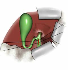 - Повреждение желчных протоков. При этом также часто требуется переход к открытой операции. Если в брюшной полости останется желчь, то это приведет к развитию воспаления. При этом после лапаротомии больного беспокоят сильные боли под правым ребром, повышается температура тела.