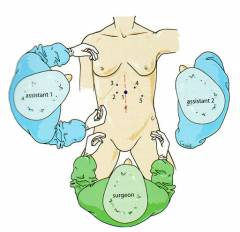 Лапароскоп. Представляет собой оптическую трубку, в которой встроена система линз, миниатюрная видеокамера и источник света. Лапароскоп может иметь различную длину и толщину. Хирург всегда начинает операцию с того, что делает отверстие в передней стенке живота и вводит через него лапароскоп. Видеокамера подсоединена к монитору, на котором врач может видеть желчный пузырь и другие внутренние органы.