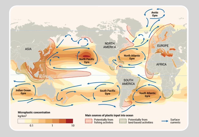 Находясь в океане, микроскопические частицы полимеров обволакиваются водорослями и бактериальной плёнкой, из-за чего растительноядные рыбы принимают их за обычный планктон и заглатывают. Далее, путешествуя по цепочке питания, микропластик в итоге достигает организма хищных рыб и человека.