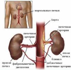 пиелонефрите). В результате просвет артерий сужается. Поэтому уменьшается поступление крови к почке, либо ее отдельным зонам — развиваются