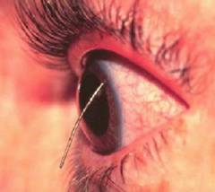 | Закладывание глазных мазей, гелей, кремов Мазь или гель наносят в нижний конъюнктивальный свод при помощи специальной палочки или выдавливают из туба через специальный зауженный наконечник. Затем глаз закрывают и проводят легкий массаж века. В отличие от глазных капель мази находятся в конъюнктивальном мешке намного дольше, и, следовательно, дольше время их действия. Для лечения болезней глаз применяют антибактериальные, противовоспалительные, противовирусные мази. | - блефарит;