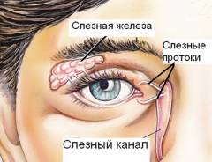 - дакриоаденит - острый или хронический воспалительный процесс слезной железы;