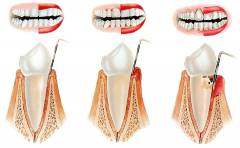 В течении пародонтоза выделяют три стадии, соответствующие степеням тяжести заболевания.