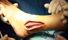 Мышцы голеностопного сустава травмируются редко. Исключение составляет открытый перелом голеностопа.