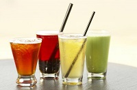 Фруктовый сок и коктейли. Возможно, вы всегда считали их исключительно полезными для здоровья, но будьте внимательны: небольшой стакан клюквенного морса или яблочного сока может содержать до 100 ккал в одной порции, а стакан смузи на основе йогурта или кефира при объеме 250 мл может содержать около 136 ккал. Чтобы снизить калорийность коктейлей, готовьте их только на основе фруктов и ягод. За основу можно взять обезжиренный кефир или йогурт. В то же время, подобные натуральные соки без сахара и других добавок помогут вам соблюдать «Правило пяти порций». Небольшое наблюдение: многие люди замечали, что съедая фрукты и овощи по кусочкам, они наедались лучше, чем когда пили коктейли из этого же количества плодов. - Газированные напитки. Сладкие газировки и кола это не только вред для зубов и пищеварительного тракта, но и лишние калории — до 140 ккал в одной баночке. По возможности заменяйте их на диетические разновидности, а лучше, думайте об отказе от них, как способе значительно уменьшить калорийность своего рациона и лишний вес. Добавляя вместо них новые вкусы в свой рацион, вы намного меньше будете зависеть от привычных сладких газировок. И исследования также подтвердили, что наши вкусовые рецепторы хорошо поддаются «тренировке» — новые вкусы заставляют их работать лучше и улавливать намного больше оттенков вкуса и аромата, чем когда вам приходилось пить однообразные газированные напитки. Со временем количество сахара в ваших напитках будет уменьшаться, а потом и вовсе сахар перестанет играть для вас важную роль. К тому же, есть проверенные приемы, чтобы сократить потребление сахара без ежедневного насилия над собой.