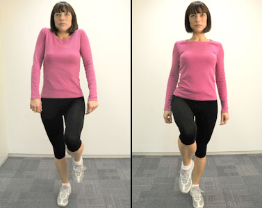 | Поднимание коленей Упражнение выполняется стоя. Поднимайте каждое колено по очереди, касаясь его противоположной рукой. Спину сохраняйте ровной, не наклоняйтесь назад или вперед. Пресс напряжен. Можно чуть согнуть опорную ногу в колене для равновесия. | Постарайтесь сделать 30 подниманий коленей за 30 секунд. |