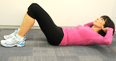 | 9 | Скручивания пресса (брюшных мышц) Чтобы правильно выполнить скручивания пресса, вам нужно лечь на пол и установить согнутые в коленях ноги. Ступни крепко зафиксируйте на полу, можно их расставить на ширину бедер или чуть меньше. Руки заложите за голову, широко разведя локти в стороны. Теперь, опираясь на ступни и на поясницу, прижатую к полу, слегка приподнимите торс над полом. Ваши лопатки должны отделиться от поверхности пола не более чем 5-6 сантиметров. Затем займите опять положение лежа. Не тяните подбородок вперед или к груди. Не помогайте себе руками, приподнимая шею. Лучше всего, если ваша спина и шея останутся ровными. Можно увеличить нагрузку на брюшные мышцы и тем самым сократить время упражнения, если после каждого скручивания вы не будете полностью ложиться на пол, а оставите между спиной и полом 2-3 сантиметра. Но такой прием рекомендуется физически подготовленным людям. | Скручивания (сокращение и расслабление) брюшных мышц выполняются по 15-25 повторений в 2 подхода. |