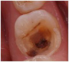 При осмотре у стоматолога обнаруживается глубокая кариозная полость. Она может соединяться с пульповой камерой. Пульпа зуба резко болезненна и кровоточит. При постукивании по зубу неприятных ощущений не возникает.