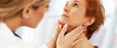 Врач просит пациента наклонить голову вперед и ощупывает шейные лимфатические узлы, грудинно-ключично-сосцевидную мышцу. Это помогает оценить состояние лимфатических узлов, сделать предварительное предположение о метастазах. |