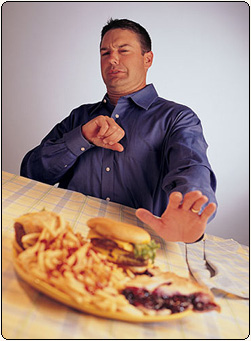 Во время еды стараться не переедать и кушать медленно (центр насыщения активируется на 20 минуте после начала еды), поэтому, если человек ест быстро, ему кажется, что он ещё голоден, продолжая приём пищи, хотя это уже не нужно.