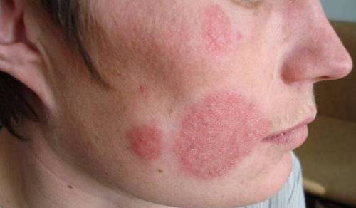 грибковое заболевание кожи). Это заболевание сопровождается появлением на коже лица четких, ограниченных от здоровой кожи, красных, шелушащих и чешущихся пятен. Возникновение этих трех симптомов (