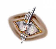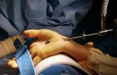При помощи эндоскопа. Для этого хирург выполняет на запястье и ладони два разреза, длиной около 1,5 см каждый. Затем вводит в один разрез эндоскоп (оптический прибор), а в другой — инструмент, при помощи которого рассекает связку запясться. Однако существует эндоскопическая методика, когда операция выполняется всего через один разрез.