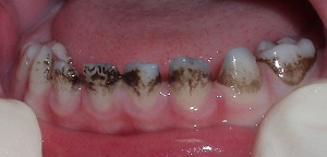 | Черный налет | Образуется главным образом у детей при участии хромогенов. Может быть связан с химиотерапией, длительным приемом тетрациклиновых антибиотиков. У детей черный налет вызван дисбактериозом и развитием грибковой флоры – хромогенного грибка. При заболеваниях печени и желчевыводящих путей в крови повышается уровень желчных кислот, которые могут стать причиной потемнения зубов. | Эстетический дефект. Гингивит – воспаление десен. Необходимо лечение причин, спровоцировавших отложение черного налета. |