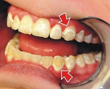 - Возможно неравномерное окрашивание, появление пятен на зубах.